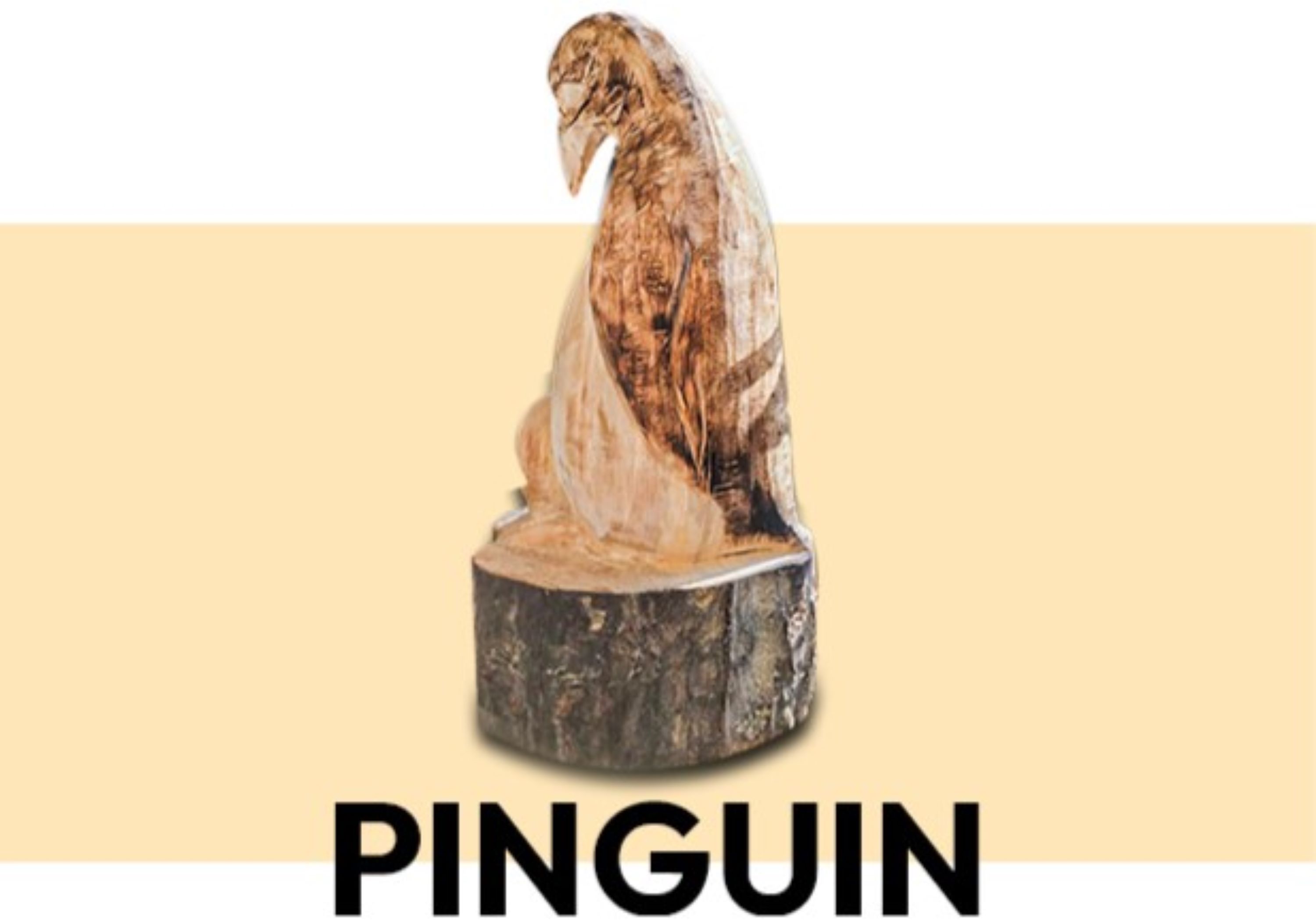 Dieses Exemplar ist nicht aus Zelluloid sondern aus Hainbuch (eines der härtesten heimischen Holzarten). Das schwerste war nicht der Transport des Holzes, sondern das schneiden. Obwohl die Kette frisch geschärft war, war es eine Qual den Piguin aus dem Holz zu schneiden.